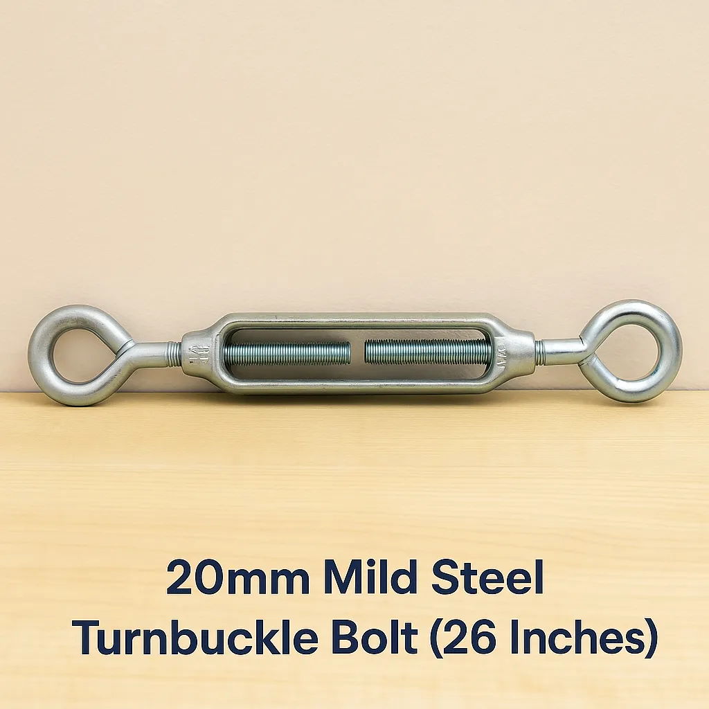 The 20mm Mild Steel Turnbuckle Bolt (26 Inches) is a high-strength adjustable connector used for structural alignment, scaffolding, formwork, and tensioning applications.
