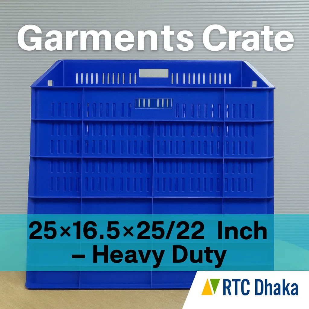 Introducing the Heavy Duty Garments Crate specially made for industrial use. Ideal for garments factories, textile mills, washing plants, accessories storage, production units, and heavy material handling. 🔶 Product Size: 📏 25 inch × 16.5 inch × 25/22 inch (Top height 25″, bottom height 22″) 🔶 Key Features: High-quality heavy-duty plastic Strong reinforcement design Long-lasting & high load capacity Perfect for garments production & transport Stackable & space-saving design Crack-resistant and washable 🔷 Best Uses: Garments factory Cutting & sewing room Washing plant Accessories storage Industrial material handling Warehouse & distribution center 📞 Order Now – RTC Dhaka 📱 01831016720 Industrial Crates • Plastic Bins • Storage Box • Material Handling Solutions
