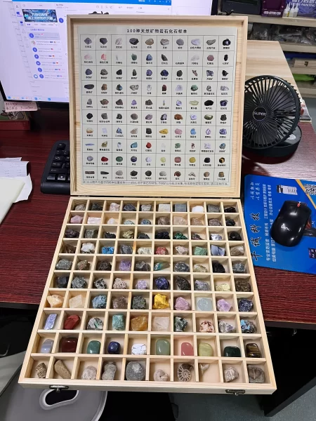 Rock, mineral, and fossil samples are used for educational and laboratory purposes.