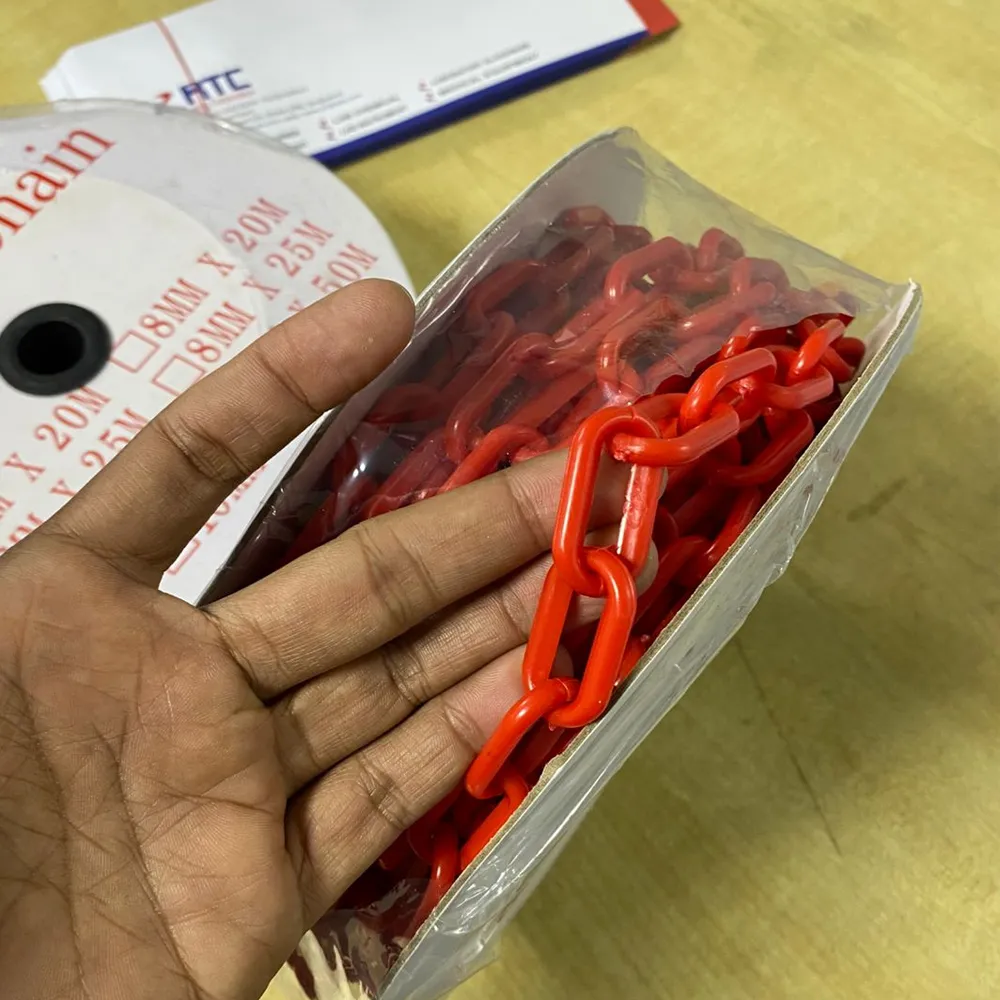 ৬ মিমি × ২০ মিটার প্লাস্টিক সেফটি চেইনটি নিরাপত্তা চিহ্নিতকরণ ও এলাকা সীমাবদ্ধ করার জন্য ব্যবহৃত হয়। এটি হালকা, টেকসই এবং সহজে ব্যবহারযোগ্য, যা নির্মাণ সাইট, পার্কিং এলাকা ও ইন্ডাস্ট্রিয়াল কাজে উপযোগী।