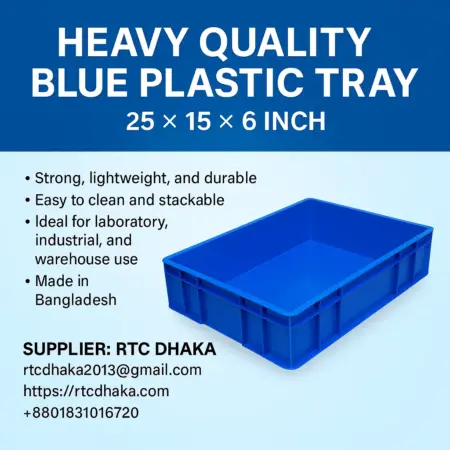#PlasticTray #HeavyDutyTray #IndustrialTray #StorageBox #PlasticContainer #BlueTray #RTCDhaka #LabEquipment #BangladeshIndustry #StorageSolutions #MadeInBangladesh #IndustrialStorage #LaboratorySupplies #RTCMachines #BangladeshSupplier