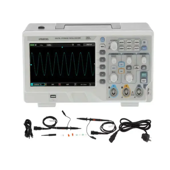 The UNI-T UTD2102CEX+ is a powerful 100 MHz, 2-channel digital storage oscilloscope designed for laboratories, service engineers, students, and professionals. With a 1 GSa/s sampling rate, 64 kpts memory depth, and 7-inch color display, it delivers accurate signal analysis and user-friendly operation.